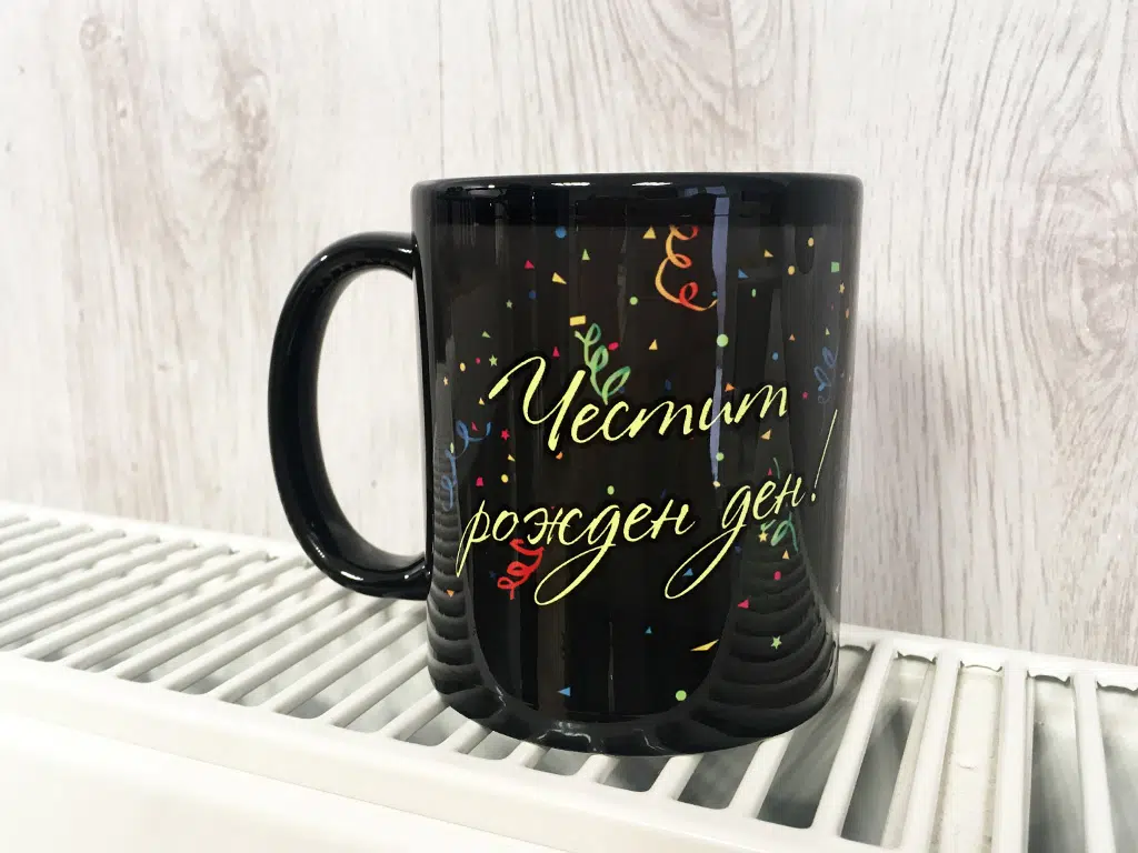 Черна чаша със снимка и надпис по Ваша поръчка. Отличен персонализиран подарък за всеки повод.